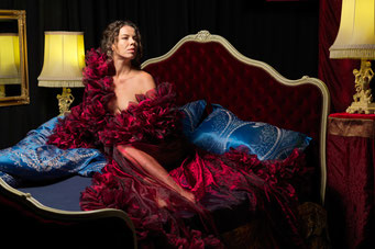 Im neuen Boudoir Set überwiegen die Farben rot und schwarz. Wenn ein Engel sich entfaltet und seine Seele zeigt, ist das wie ein Schmetterling der mit den Flügeln einen leisen Lufthauch erzeugt.